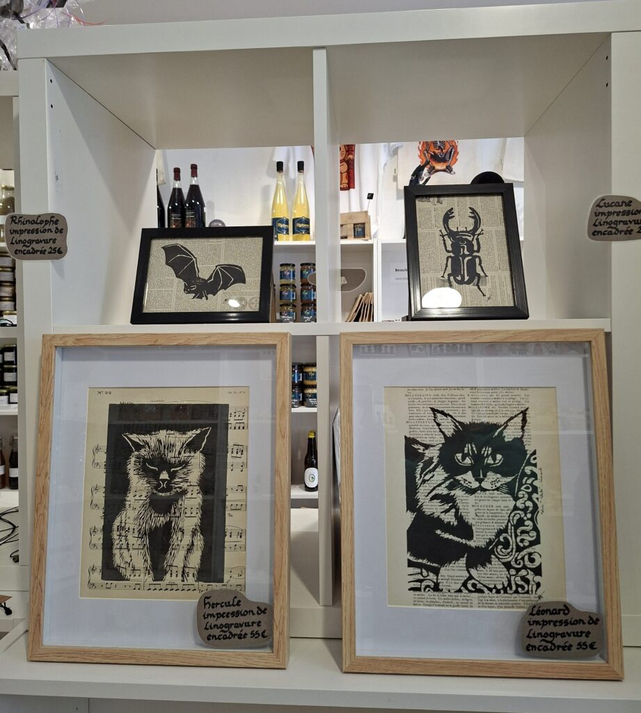 Mais l’événement le plus marquant de ce mois-ci est la présence de mes créations dans la boutique « La bande à Elyna » 24 rue du Neufbourg à Metz. C’est par un temps de neige que je me suis déplacée pour venir déposer un ensemble d’impressions de linogravure et d’autres créations. Je suis heureuse d’avoir rejoint un commerce qui encourage les créateurs de l’Est de la France et qui propose une belle diversité de produits !